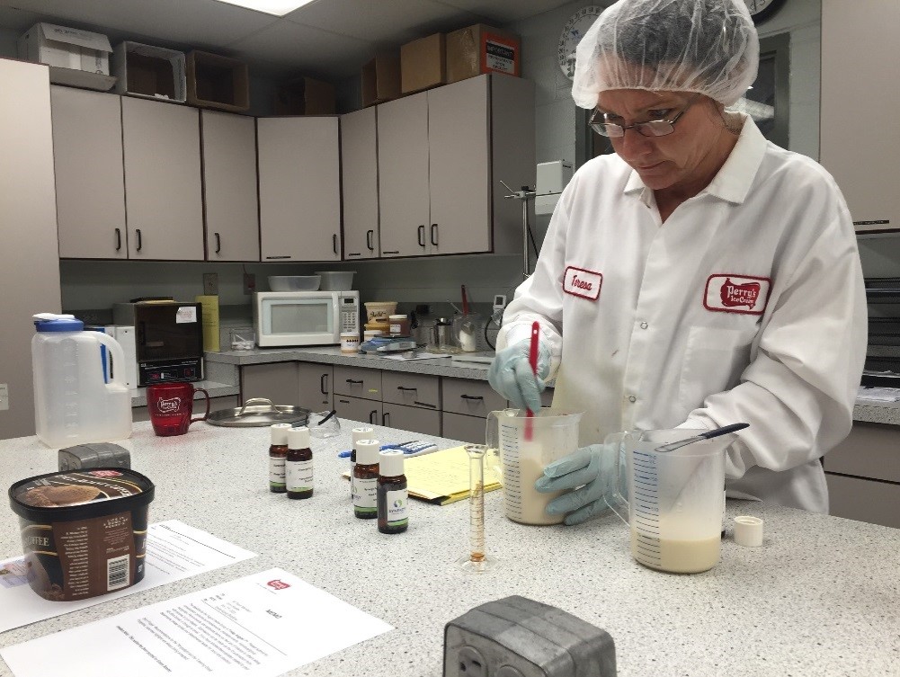 We had the opportunity to spend time in our lab with Teresa, our Food Technologist. She helps develop flavors for Perry’s summer ice cream stand lines and any new flavors we would want to have available in grocery stores.